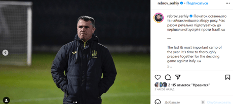 "Початок останнього та найважливішого збору року. Час разом ретельно підготуватись до вирішальної зустрічі проти Італії", — написав Ребров.