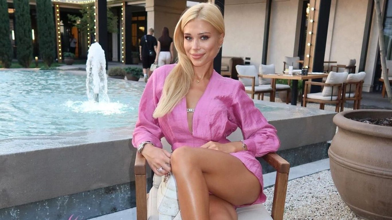 В останній публікації Анастасія постала перед публікою у яскравому блискучому сріблястому костюмі з піджака та шортів.