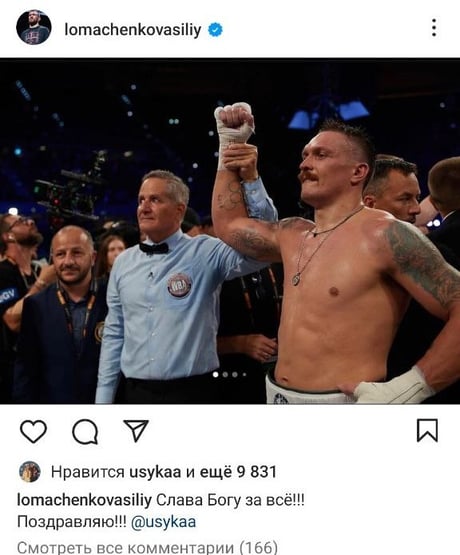 Після бою до Усика через Instagram звернувся його кум Василь Ломаченко.
