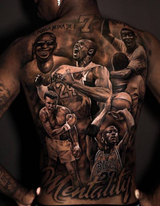 Також на спині гравця набиті написи: "ментальність" і "життя чорношкірих важливі".