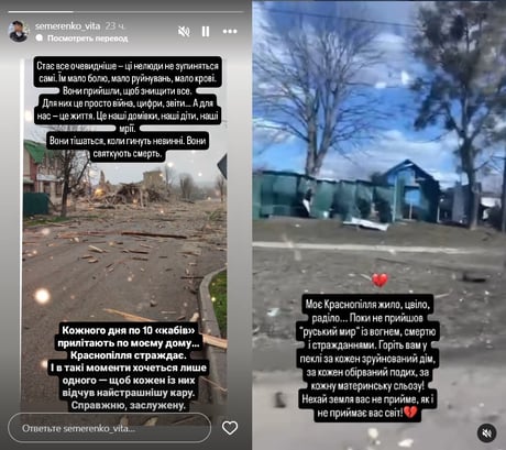 "Ці нелюди самі не зупиняться. Їм мало болю, мало руйнувань, мало крові. Вони прийшли, щоб знищити все. Для них це просто війна, цифри, звіти. А для нас це життя. Це наші будинки, наші діти, наші мрії", — написала Семеренко.