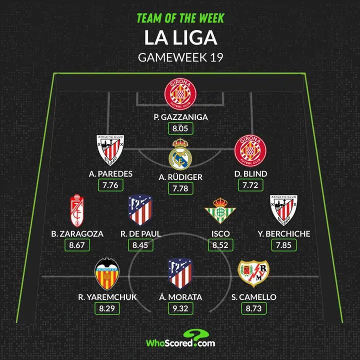 Достижение Мораты не помогло его команде — "Жирона" забила победный гол в конце матча. Сразу два футболиста каталонской команды оказались в символической сборной 19-го тура. Это голкипер Гассанига и защитник Блинд, который забил в том поединке свой дебютный гол.