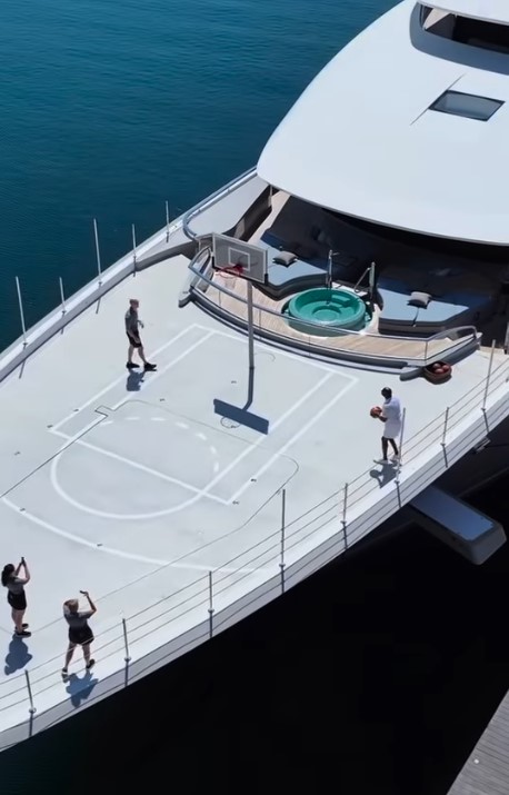 На 95-метровом судне он установил баскетбольную площадку прямо на носу и продемонстрировал это на своей странице в Instagram.