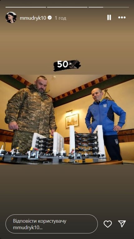 Вингер Челси и сборной Украины Михаил Мудрик предоставил солидную помощь для Вооруженных сил Украины в войне против России. Он выложил фотографию с украинскими военными и дронами и добавил надпись — 50.