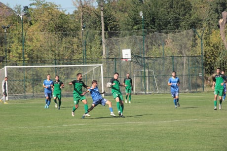 А на 68-й минуте "Титан Одесса" открыл счет. Лаптев начал атаку навесом в штрафную, Мишуренко сразился, вратарь упал после удара Кондратюка, мяч попал в перекладину и Мишуренко был первым на добивании.