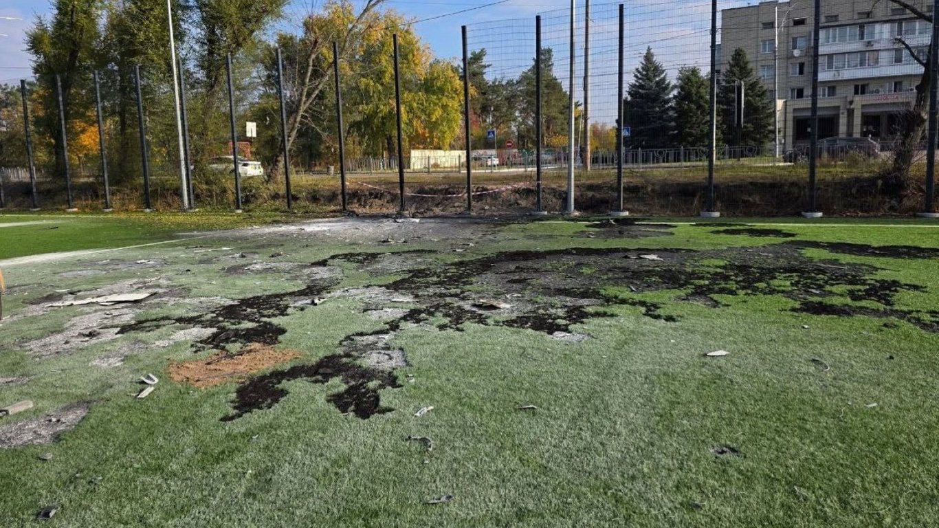 Российский удар повредил искусственное футбольное поле, а ударная волна выбила окна в футбольном и легкоатлетическом манежах.