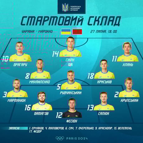Главный звезды национальной команды снова выйдут на поле с первых минут игры. Автор первого гола в истории "сине-желтых" на Олимпийских играх Рубчинский, полузащитник Крыськив и форвард Сикан готовы к матчу.