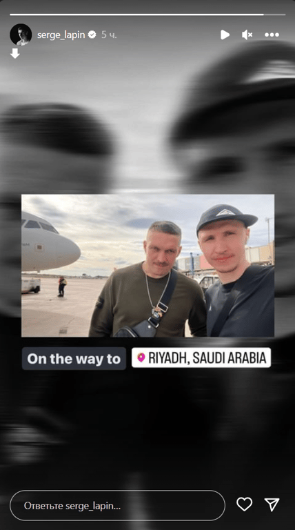 По информации Лапина, Усик сейчас находится на пути в столицу Саудовской Аравии Эр-Рияде.
