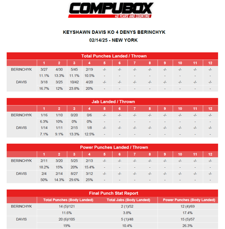 Після бою система CompuBox опублікувала статистику ударів.